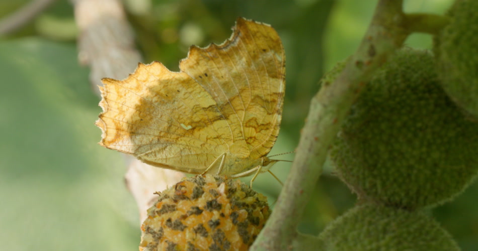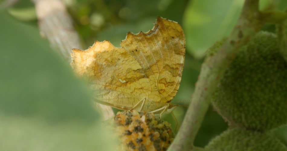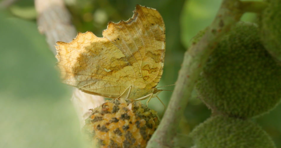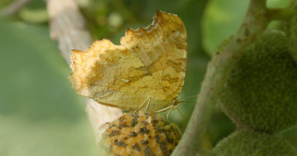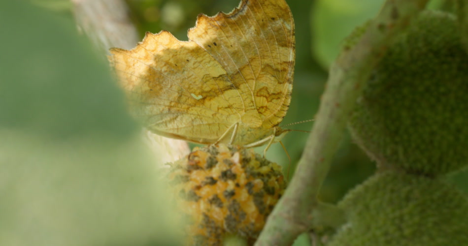 春天树上蝴蝶黄钩蛱蝶昆虫