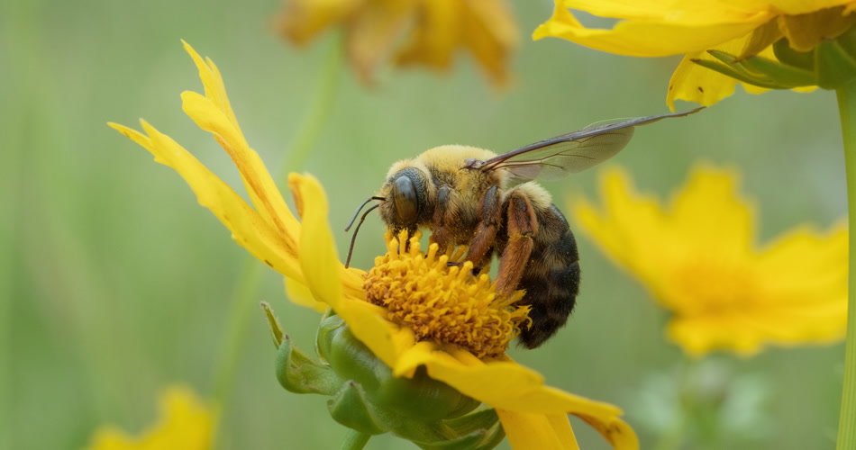 春天金鸡菊花朵蜜蜂采蜜木蜂