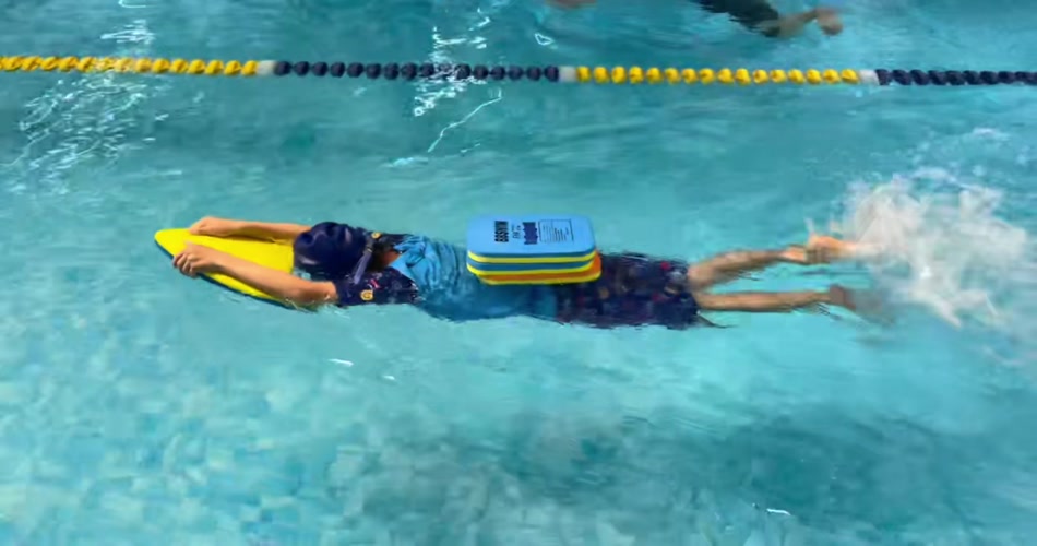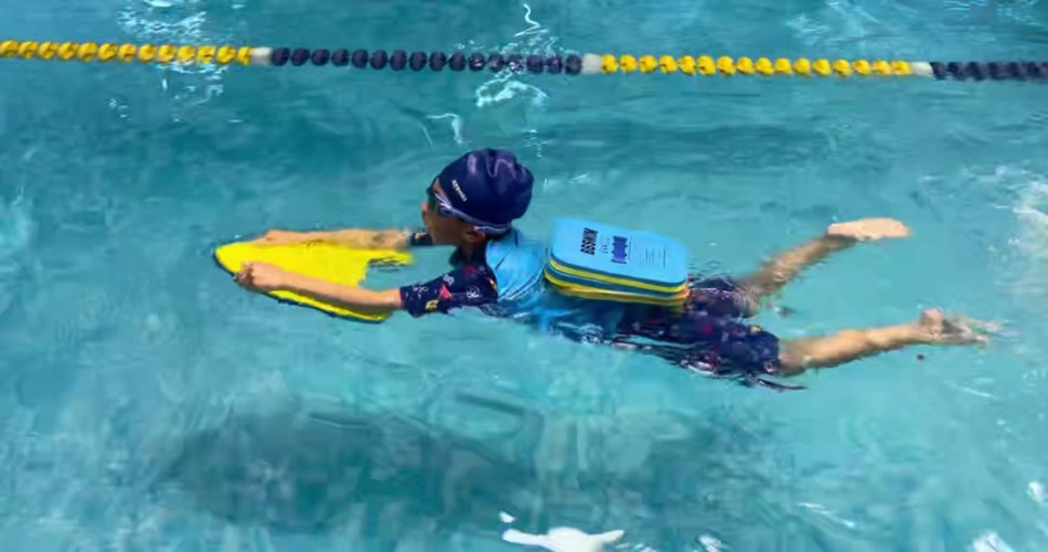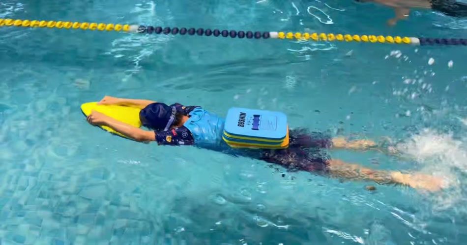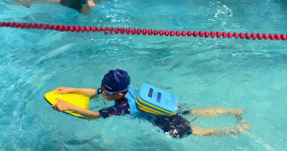 实拍小朋友泳池游泳训练视频