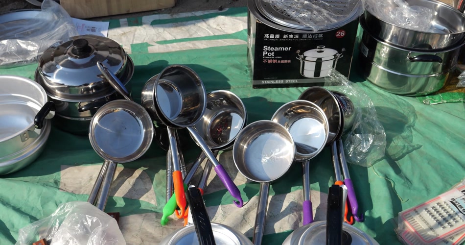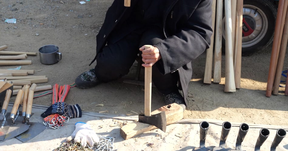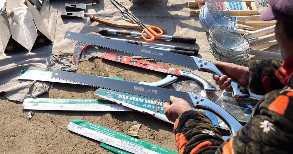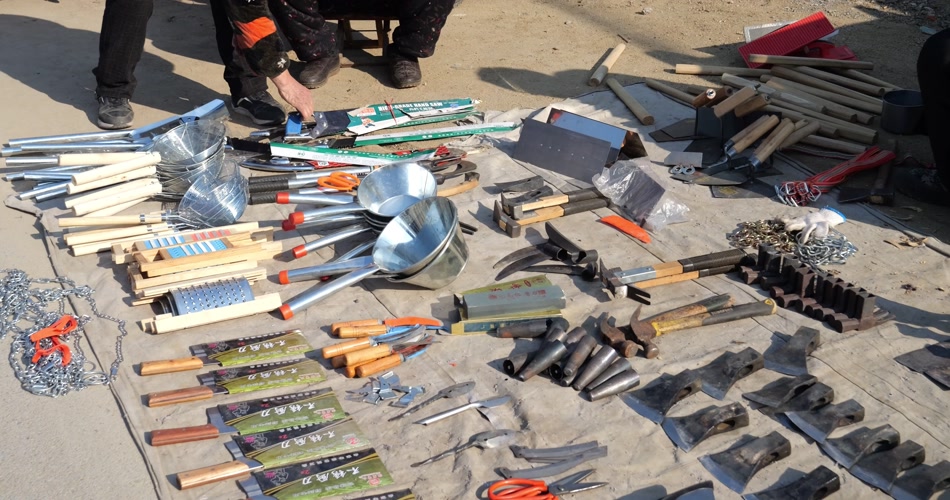 大集 冬季 人群 农贸市场 交易 交流 年集 年货 乡村集市 山东大集 农村大集 斧头 钢锯 劳保工具 锅 舀子 菜刀 烟筒 耙 勺子