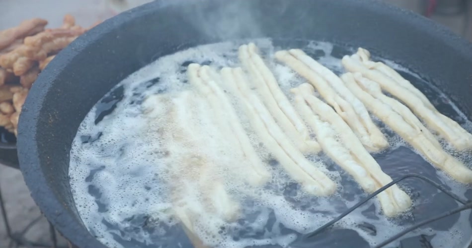油条 油炸 早餐 早晨 早上 农村 面食 果子 早点 小吃摊 地摊 和面 油条 油炸 面粉 食用油 快餐 面点 早餐小吃 美食 食品加工