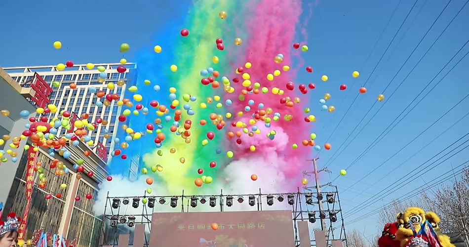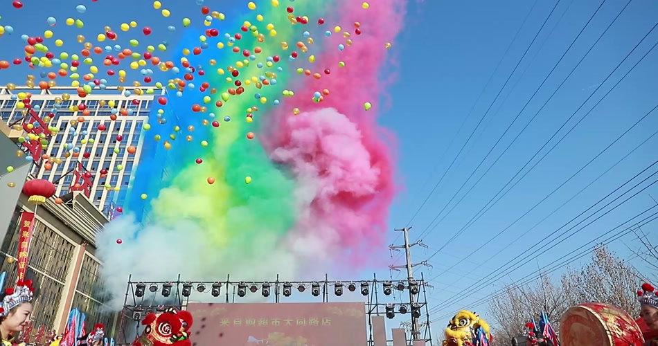 彩烟 开幕 彩烟庆典 喜庆 庆祝 活动 赛事 彩色烟雾 彩色烟花 仪式开工 开业 彩色气球 热闹 喜庆