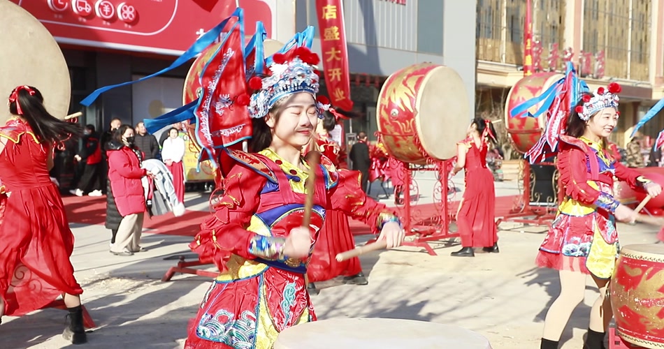 开业 庆典 舞狮子 狮子表演 打鼓 航拍 热闹 敲鼓 团队表演