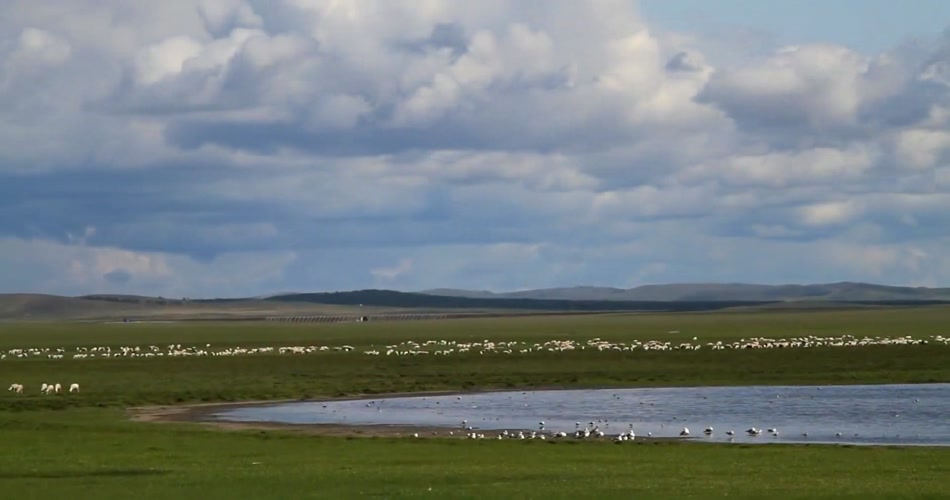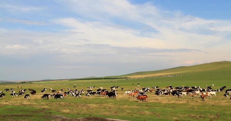 内蒙古自然风光草原花草放牧牛羊