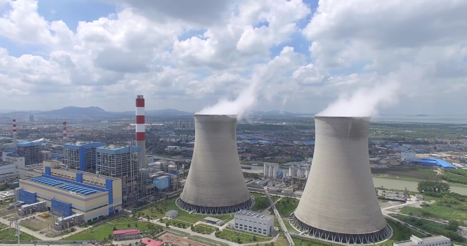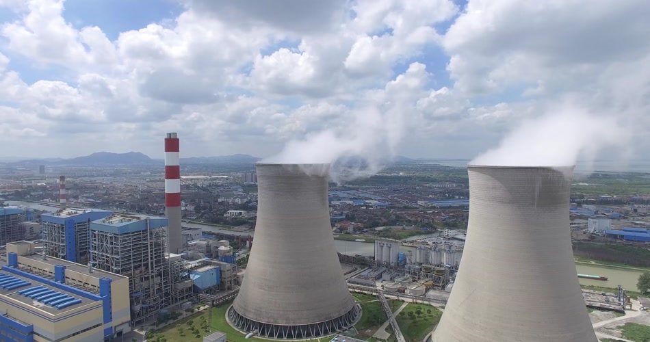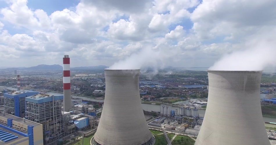 电厂大烟囱航拍 水冷却塔 4K素材 绿色环保