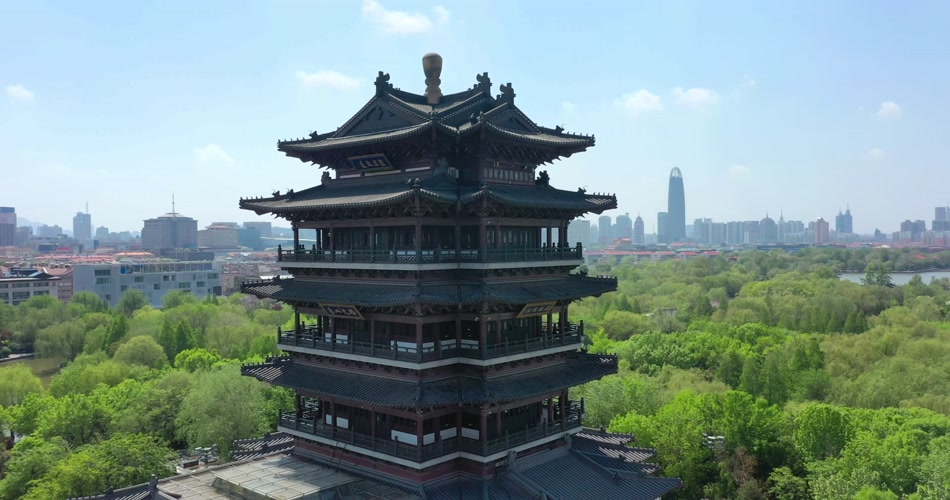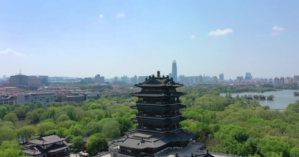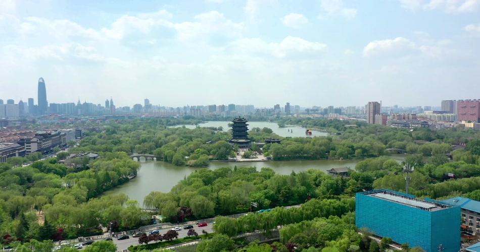 航拍大明湖风光城市风景名胜视频素材