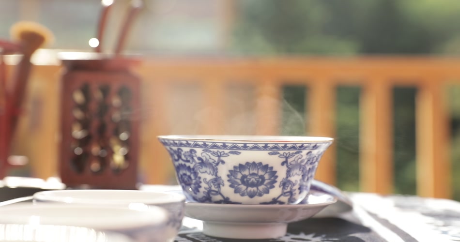 [泡茶]陶瓷茶杯中用开水冲茶实拍视频