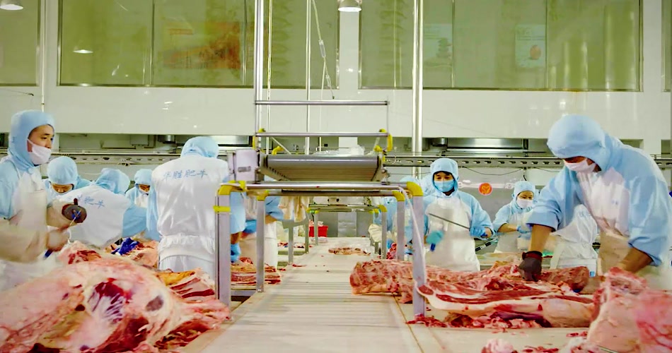 养牛基地牛肉加工厂生产线视频素材