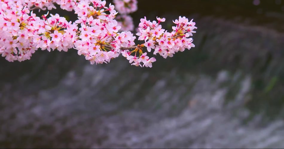 朦胧意境美丽的春天樱花流水背景视频