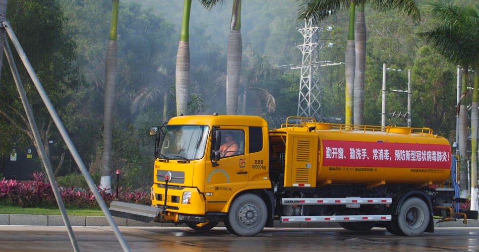 疫情期间洒水车喷洒消毒视频素材