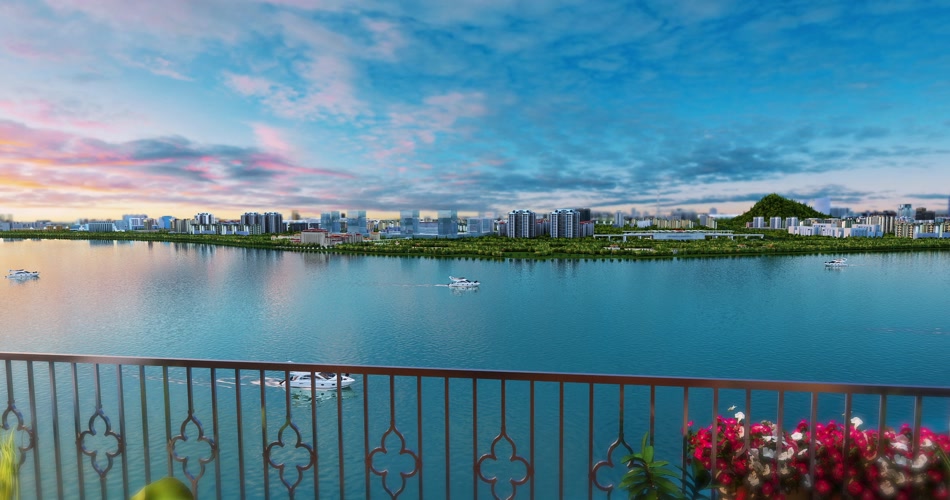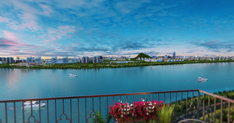 唯美三维房地产滨江180度观景阳台动画视频素材