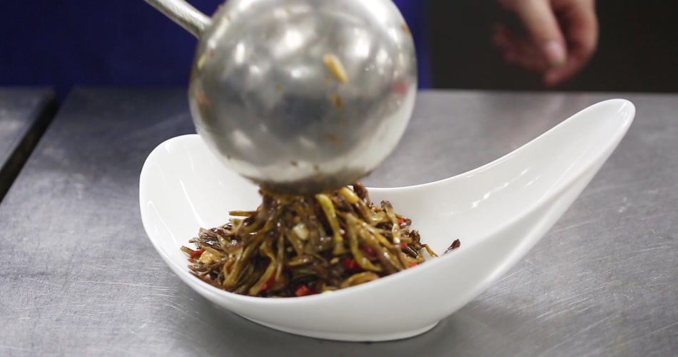 高清实拍烹制黄花菜美食背景视频