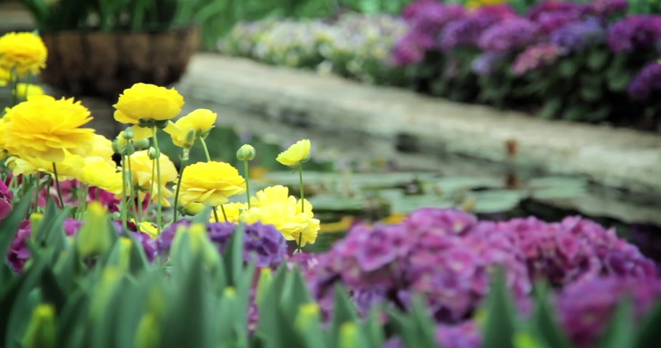艳丽绽放花朵盛开小桥流水渲染唯美