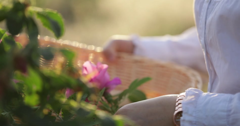 实拍美女采摘玫瑰花视频素材