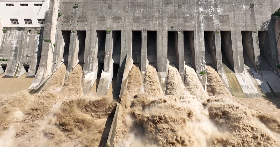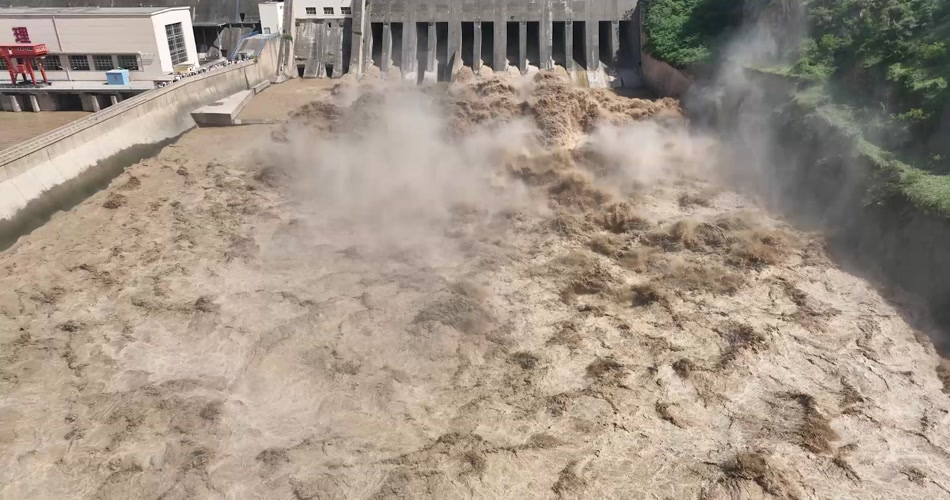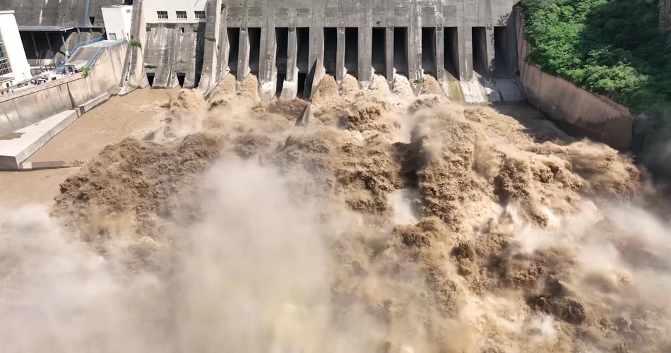 黄河三门峡大坝泄洪航拍